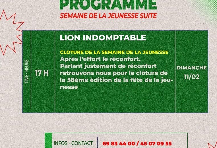 Mobilisons nous demain pour la clôture des activités marquant la fête de la jeunesse,avec une apothéose festive aux lions Indomptables.Tous les jeunes de 0 à 77ans Camerounais sont attendus.